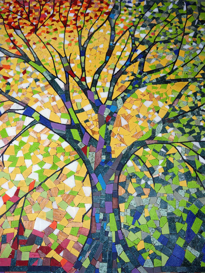 A Tapestry of Time: Four Seasons Tree Mosaic | Luxury Handcrafted Art