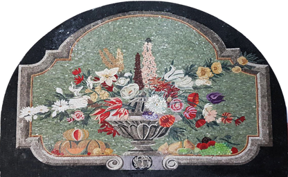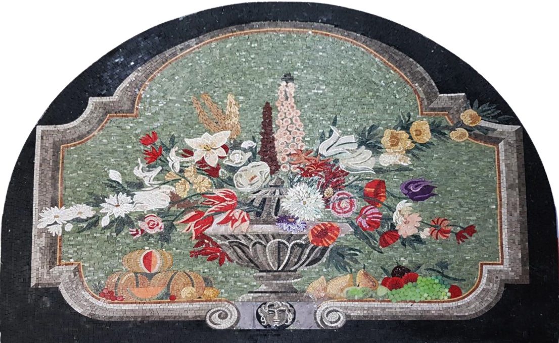 Introducing our stunning Mosaics Art - Flower Fountain, a breathtaking piece that beautifully combines artistry and craftsmanship. This unique mosaic artwork boasts an enchanting arch shape, featuring a captivating flower fountain that draws the eye and sparks the imagination. Set against a striking black background, the contrast enhances the delicate details and vibrant colors of the mosaic, making it a perfect centerpiece for any wall.
