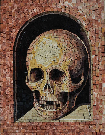 At the heart of this piece lies the skull – a profound representation of mortality, reminding us of the fleeting nature of existence and the inevitable fate that awaits us all. Embracing Gothic elements, this mural weaves together intricate designs that evoke feelings of both wonder and contemplation. Each tile in the mosaic contributes to the haunting beauty of the skull set in an intricately detailed tomb, creating a visually stunning centerpiece that draws the eye and stirs the imagination.