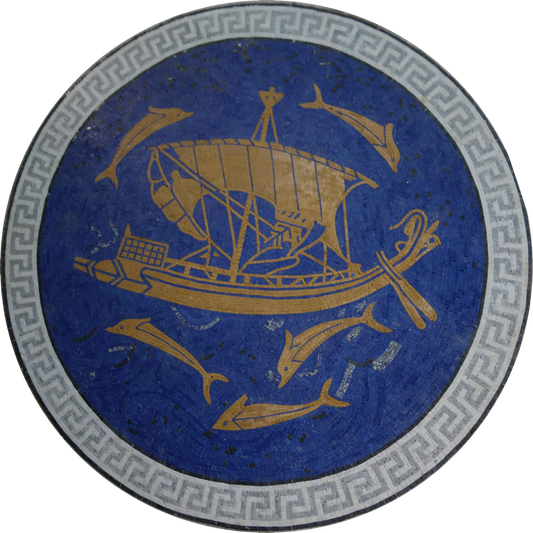 Ancient Mosaic - Roman Ship & Dolphins