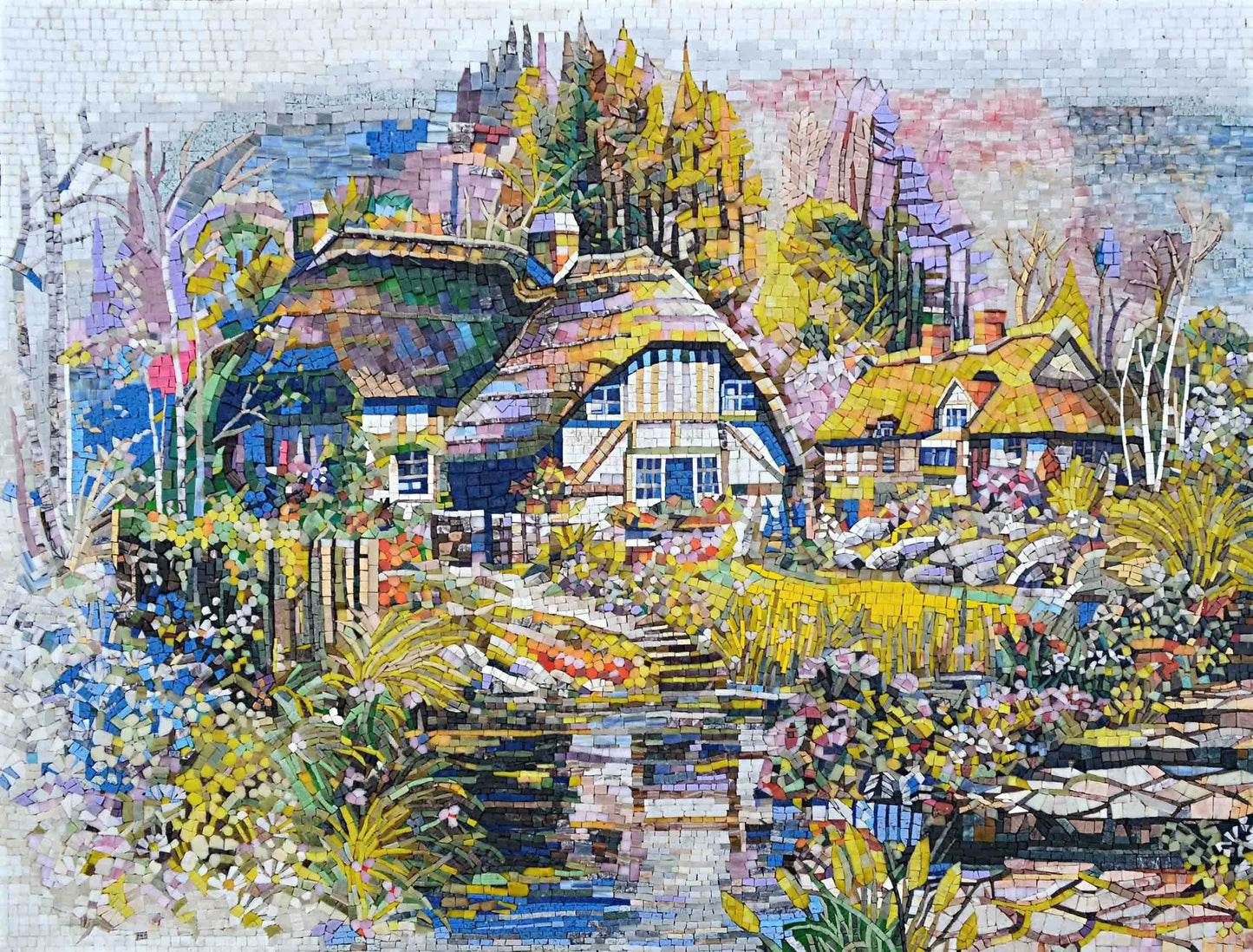 Transform your living space into a whimsical retreat with our exquisite "Marble Mosaic Murals - Fairy House on River." This stunning piece of art beautifully captures the magic of a fairy tale, featuring a charming fairy house nestled beside a serene river. Our mural is not just an artwork; it's a statement piece that brings warmth, color, and an enchanting atmosphere to any room.