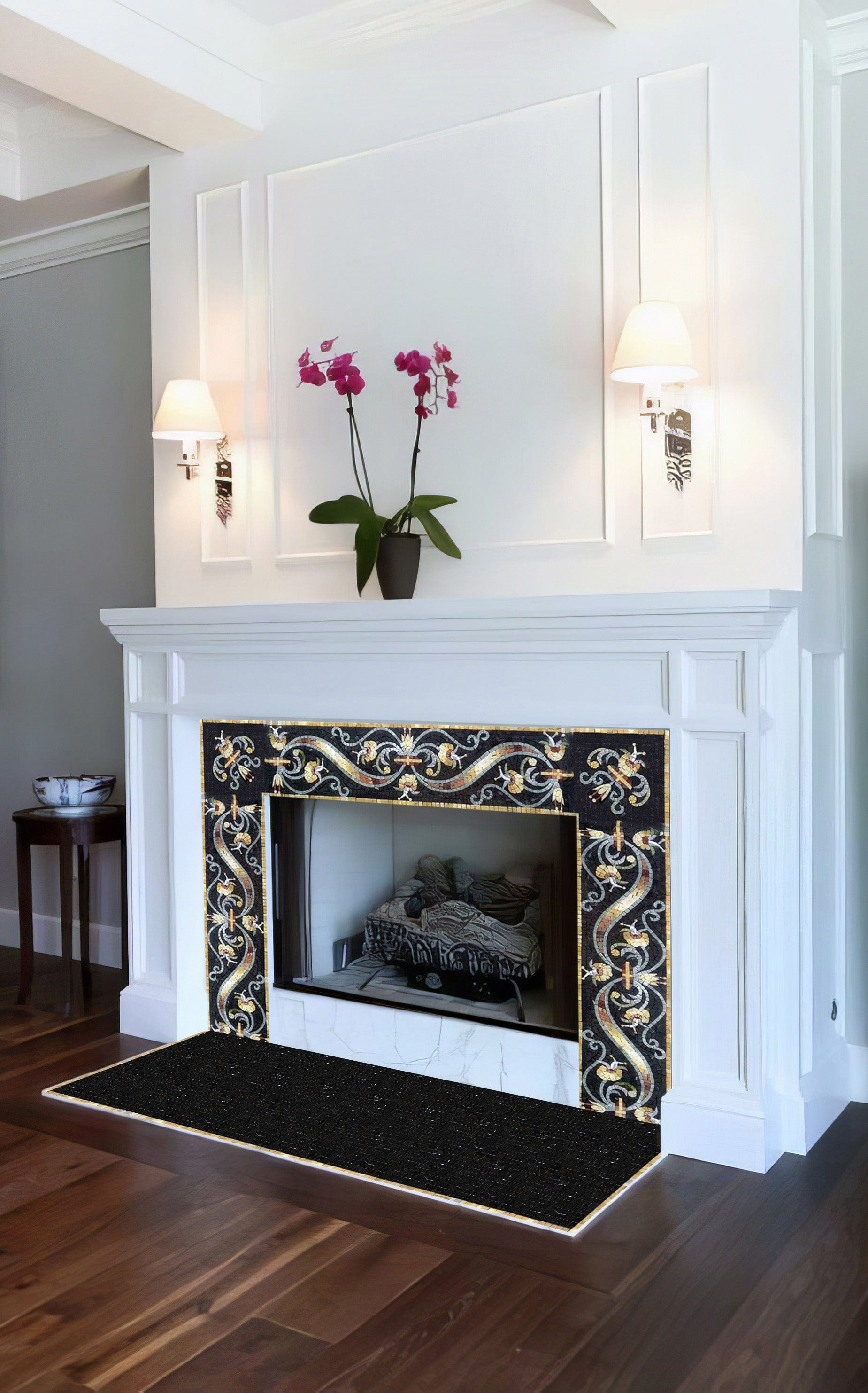 Imagining cozy evenings spent by the flickering flames becomes a reality with the Modern Mosaic Fireplace. Its ambient glow brings an inviting atmosphere, perfect for gatherings with family and friends or intimate nights in solitude. The combination of warmth and elegance makes this fireplace more than just a heating source; it is a lifestyle choice that embodies luxury and sophistication.