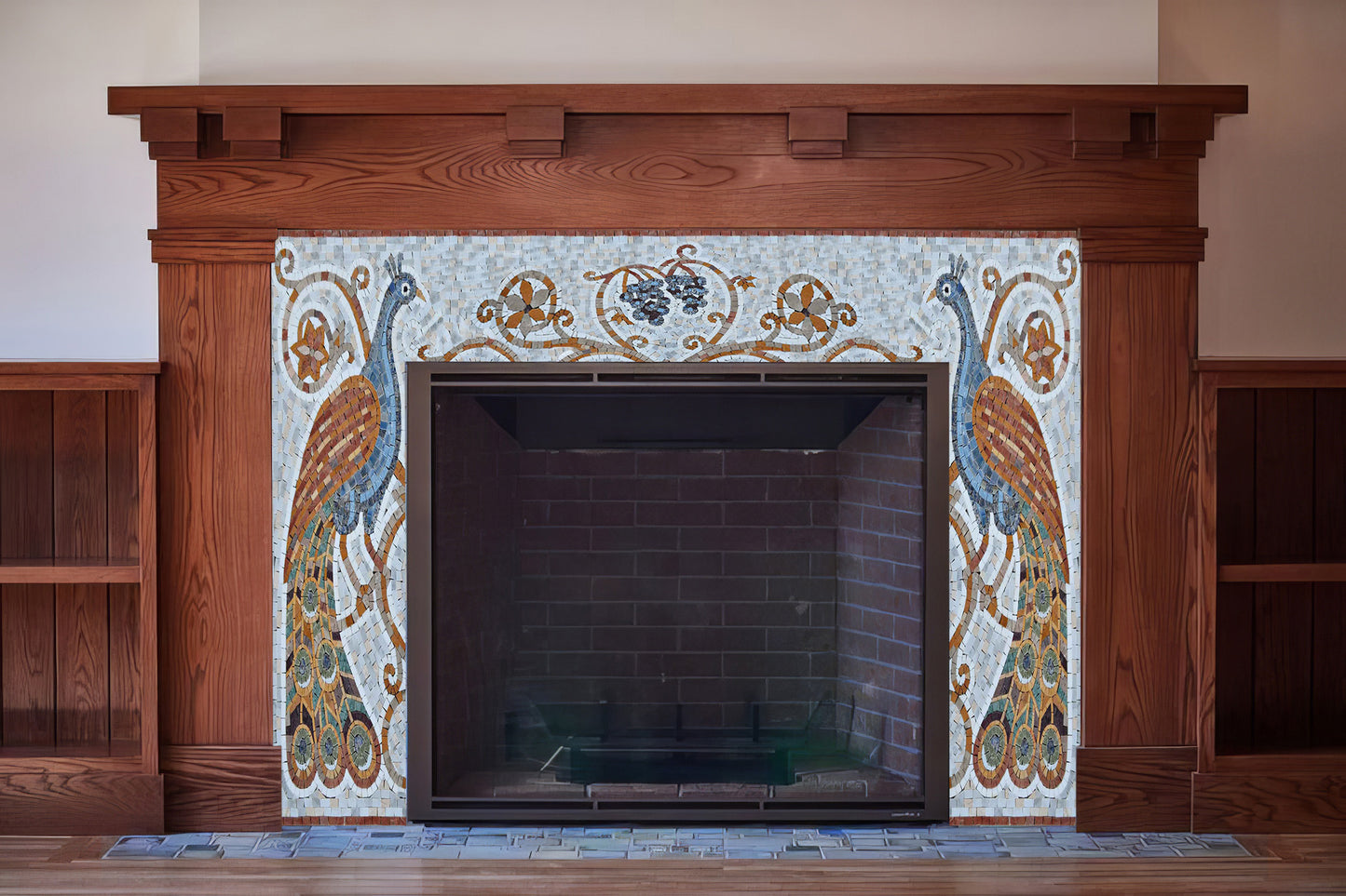The intricate craftsmanship of our mosaic fireplace showcases a breathtaking peacock motif, symbolizing beauty, pride, and grace. Each tile is meticulously placed to create a harmonious blend of vibrant colors that dance and shimmer, reminiscent of the peacock’s iridescent feathers. This unique design not only serves as a functional fireplace but also as a stunning work of art that ignites conversation and admiration among your guests.
