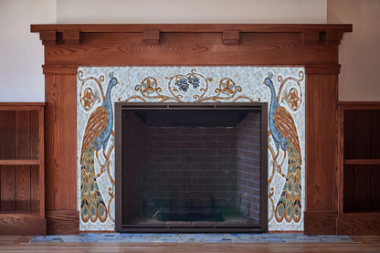 Imagine hosting friends around your vibrant mosaic fireplace, basking in the warm glow of the flames as the exquisite peacock design adds a layer of elegance to your home. Its distinctive artistry serves as a reminder of nature's beauty, making every moment spent near this fireplace special.
