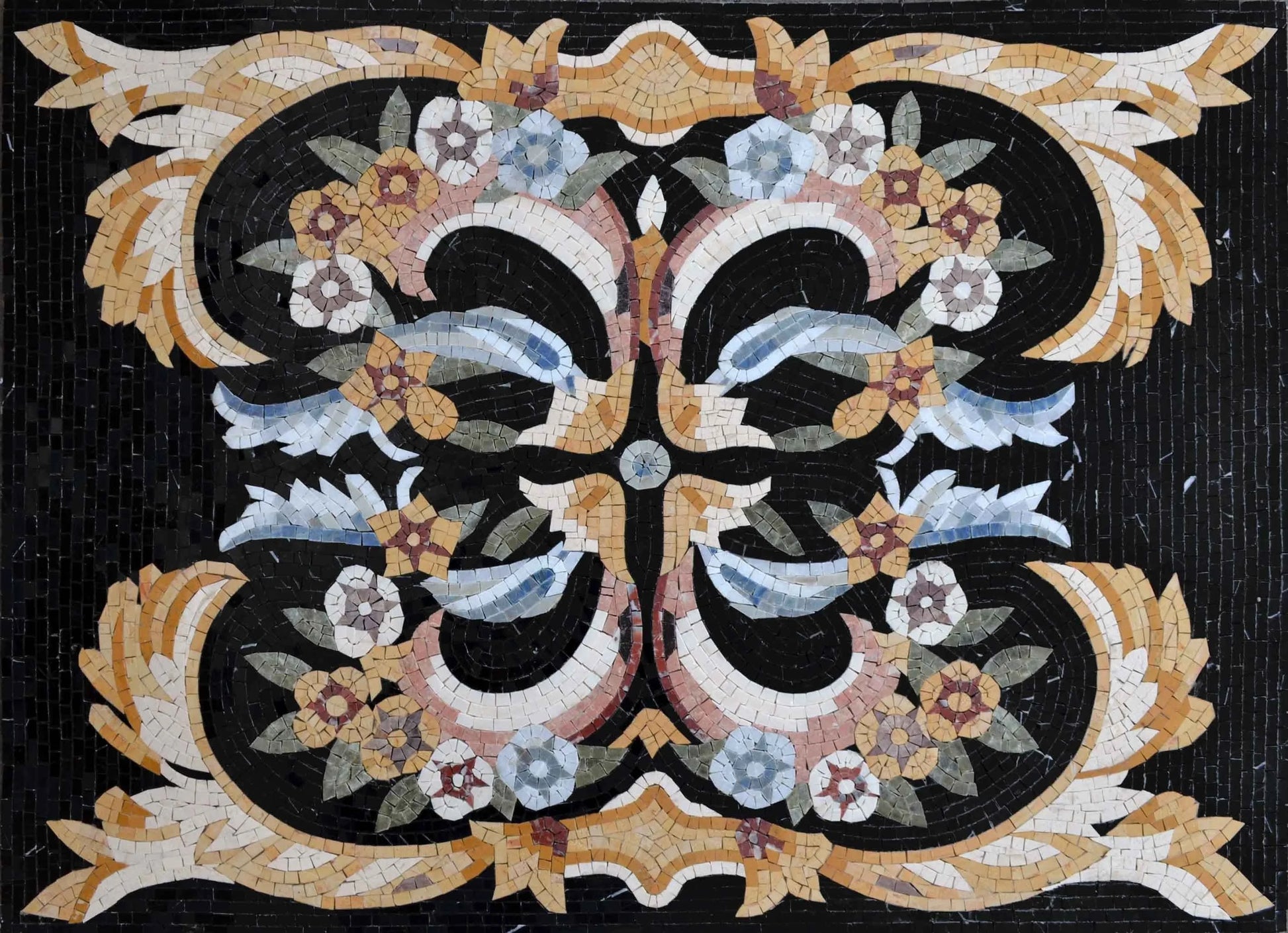 Introducing the Mosaic Rug - Florelia Negro, a stunning addition to your outdoor or indoor space that blends artistry and nature seamlessly. This exquisite handmade mosaic rug is crafted from all-natural marble, showcasing intricate floral patterns that bring life and elegance to any setting.